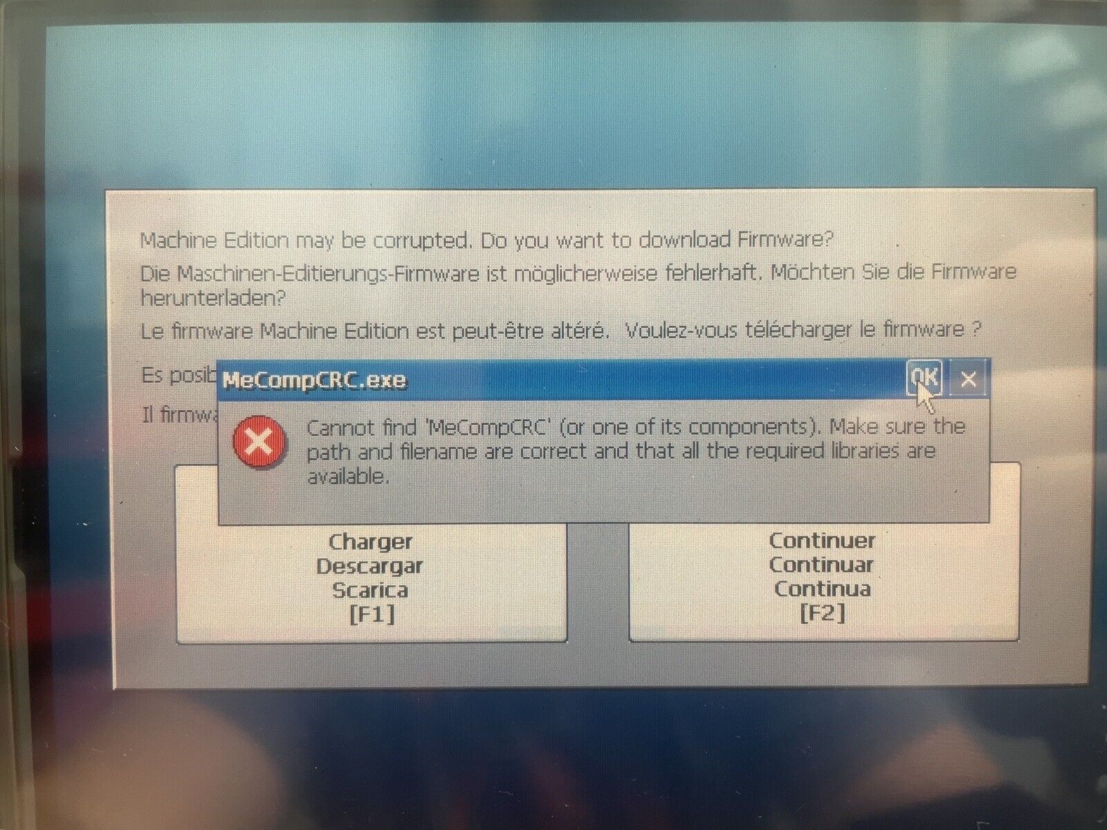 Please note the pictures as the panel powers up, but displays an error code as depicted in the pictures.