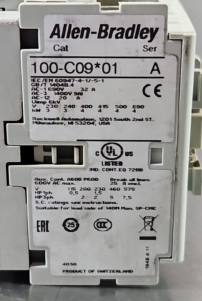 Allen Bradley 100-C09*01 Ser A Contactor. Loc4B-25*