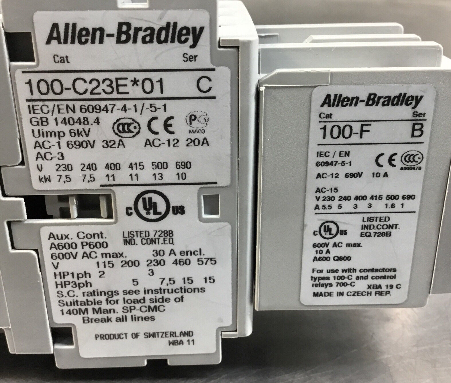 Allen Bradley 100-C23E*01 /C + 100-F /B Contactor 24VDC Coil 4C