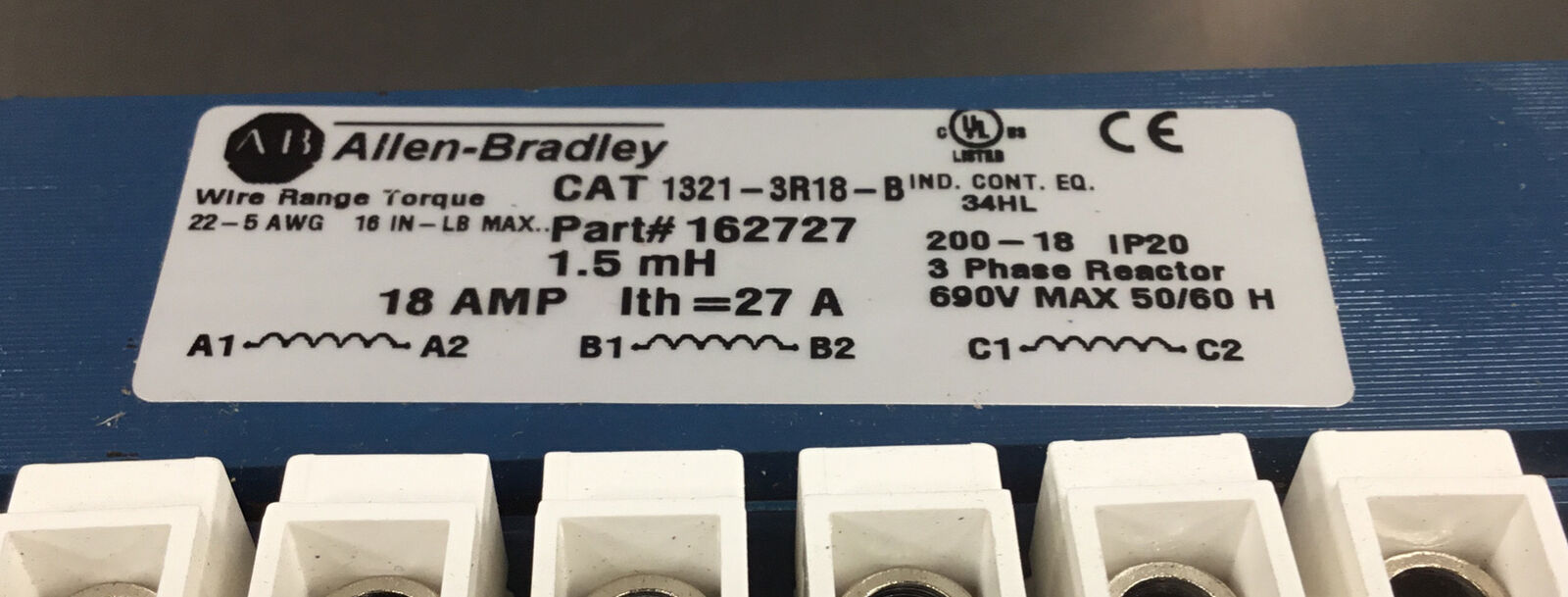 Allen Bradley 1321-3R18-B 600V 3-Phase Reactor 162727 4E-20