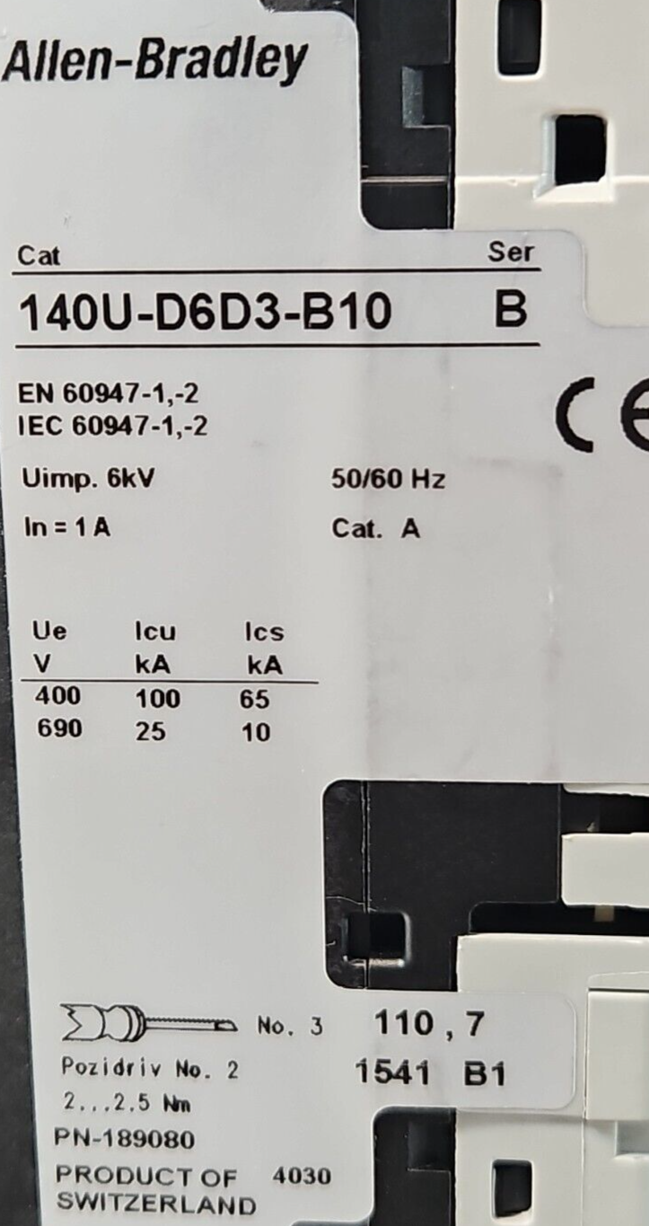 Allen Bradley 140U-D6D3-B10 /B Circuit Breaker 3 Pole 1A .