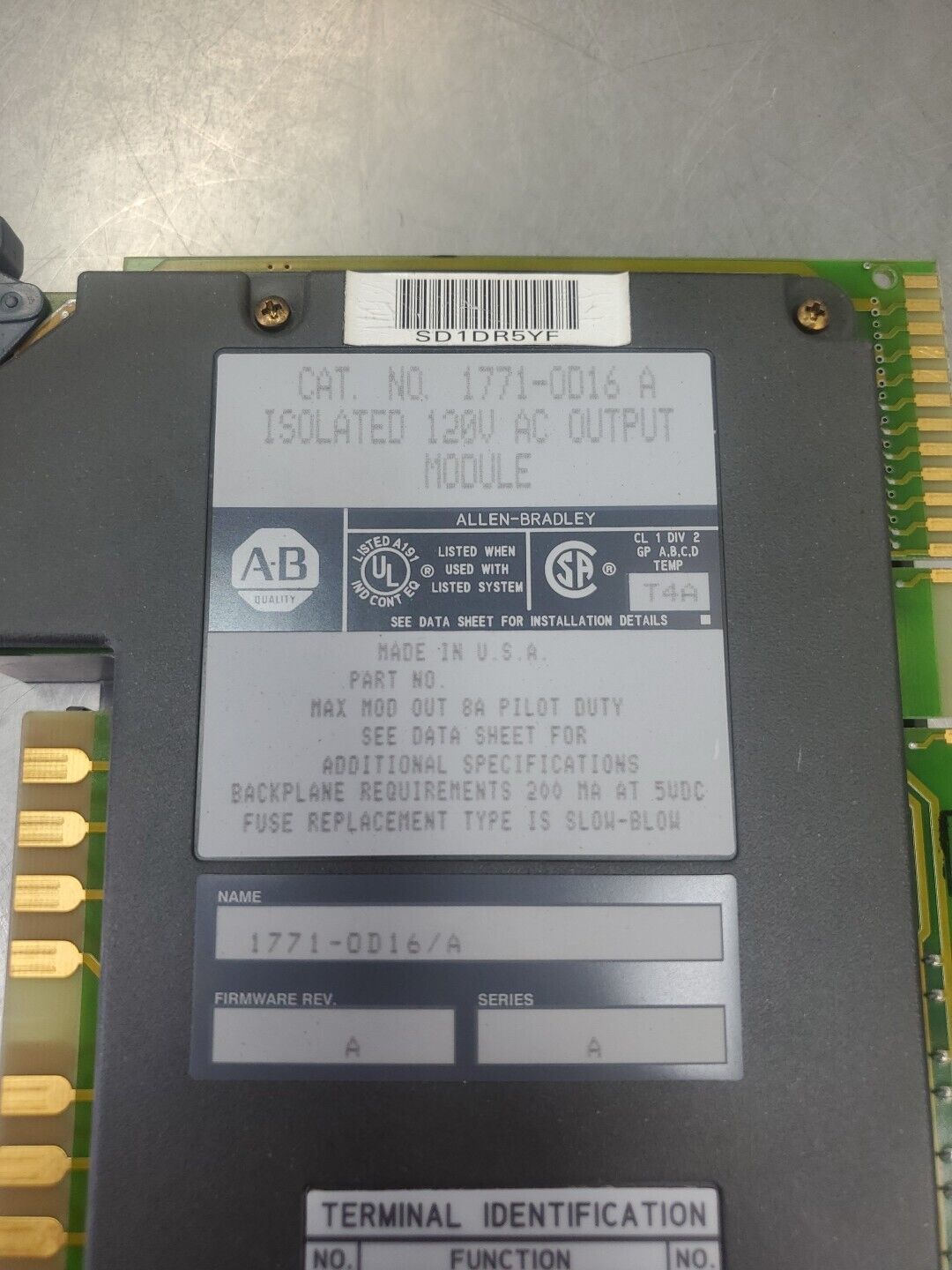 ALLEN BRADLEY 1771-OD16 SER A ISOLATED 120V AC OUTPUT MODULE. 3D-38