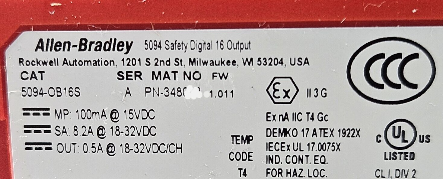 Allen Bradley 5094-OB16S Ser A Safety I/O Module 16 Output Loc4D8