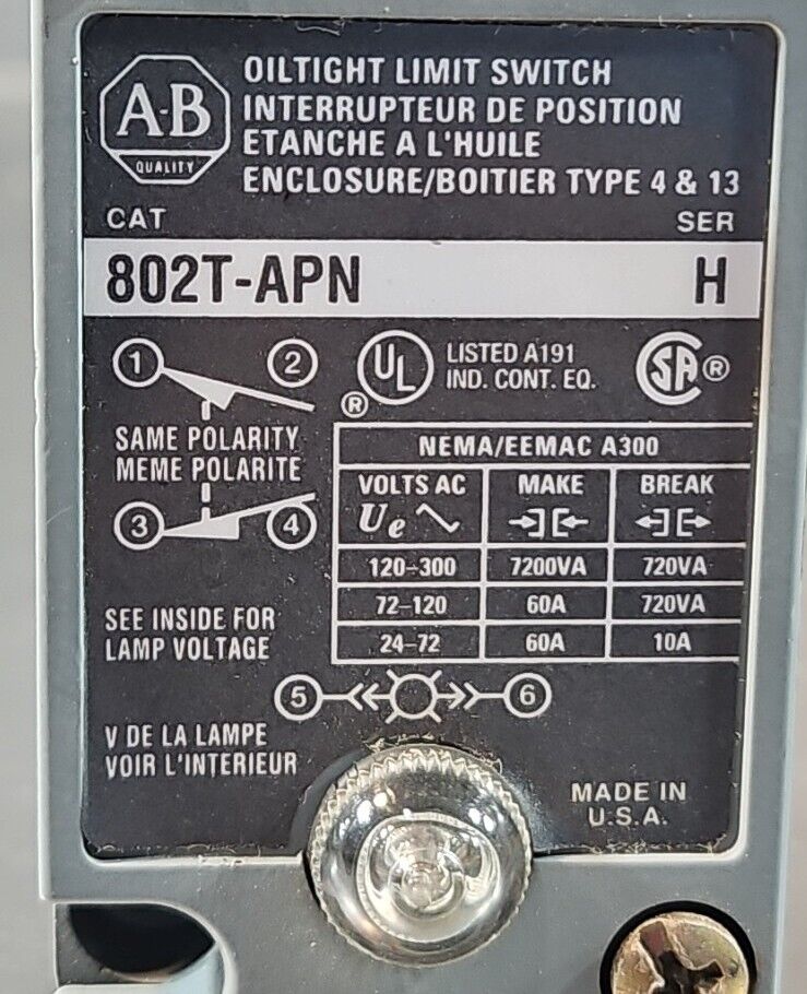 Allen-Bradley 802TAPN Oiltight Limit Switch. Loc4C-23