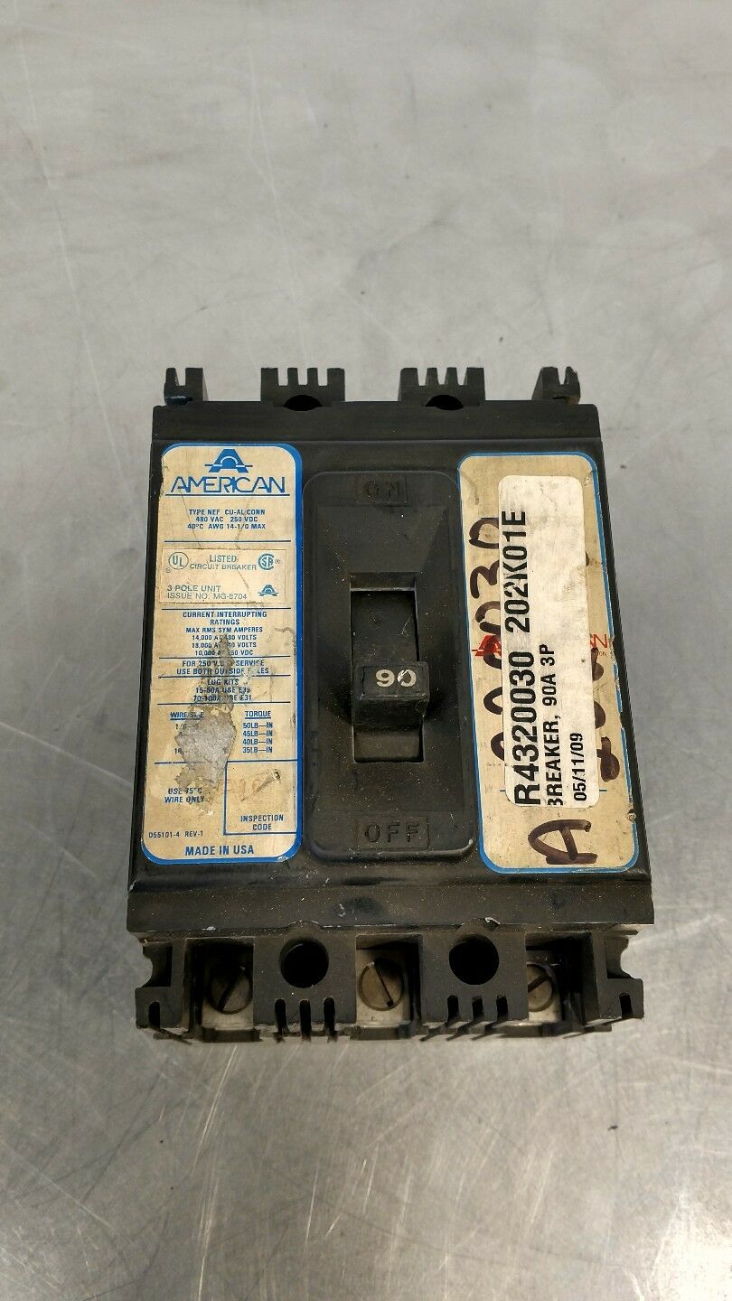 AMERICAN CIRCUIT BREAKER CU-AL CONN TYPE NEF 480VAC 90A 3 POLE 4E-4