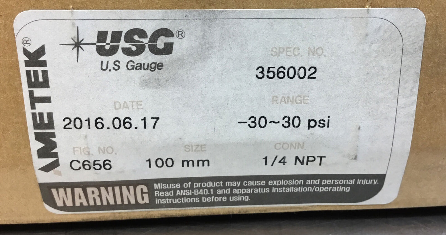 Ametek / USG C656 356002 Pressure Gauge -30~30 PSI 1/4NPT 100mm 6D