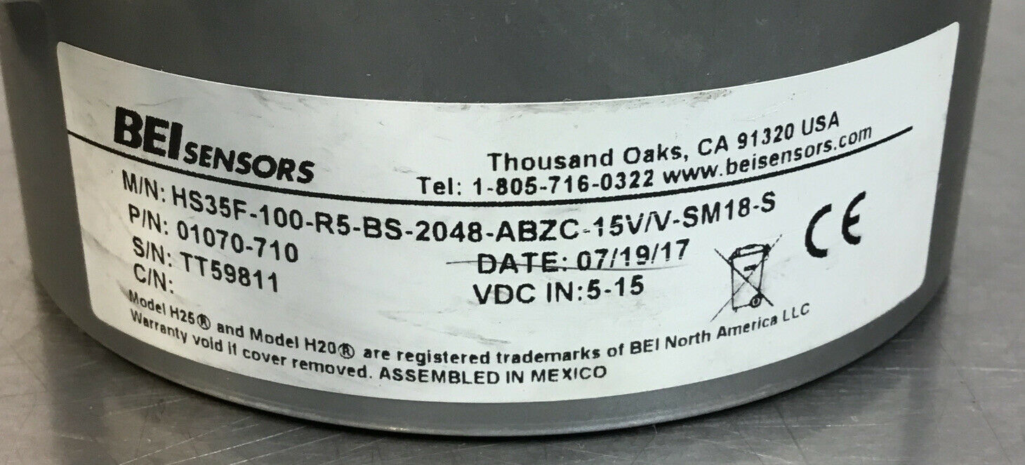 BEI SENSORS HS35F-100-R5-BS-2048-ABZC-15V/V-SM18S Encoder 5-15VDC 01071-710 1D