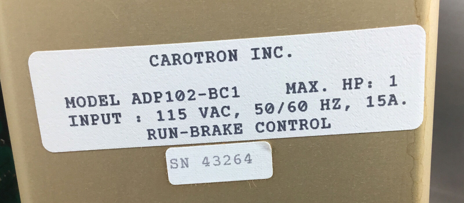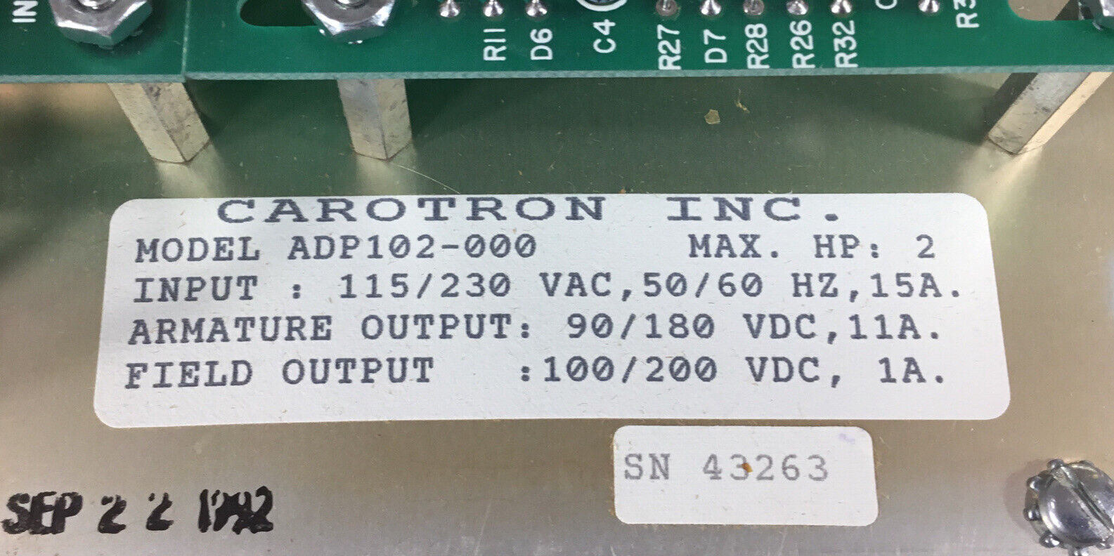 CAROTRON DC DRIVE ADP100 SERIES ADP102-BC1 1HP 115VAC 50/60Hz 15A 1C