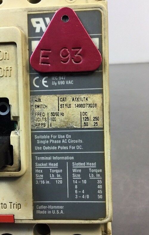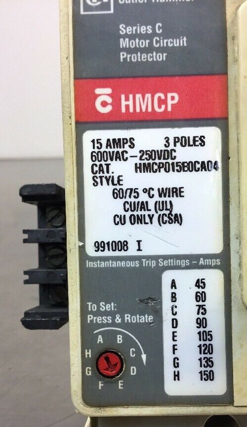 CUTLER HAMMER HMCP015E0CA04 /C CIRCUIT BREAKER 15A, 600VAC-250VDC 4E-2