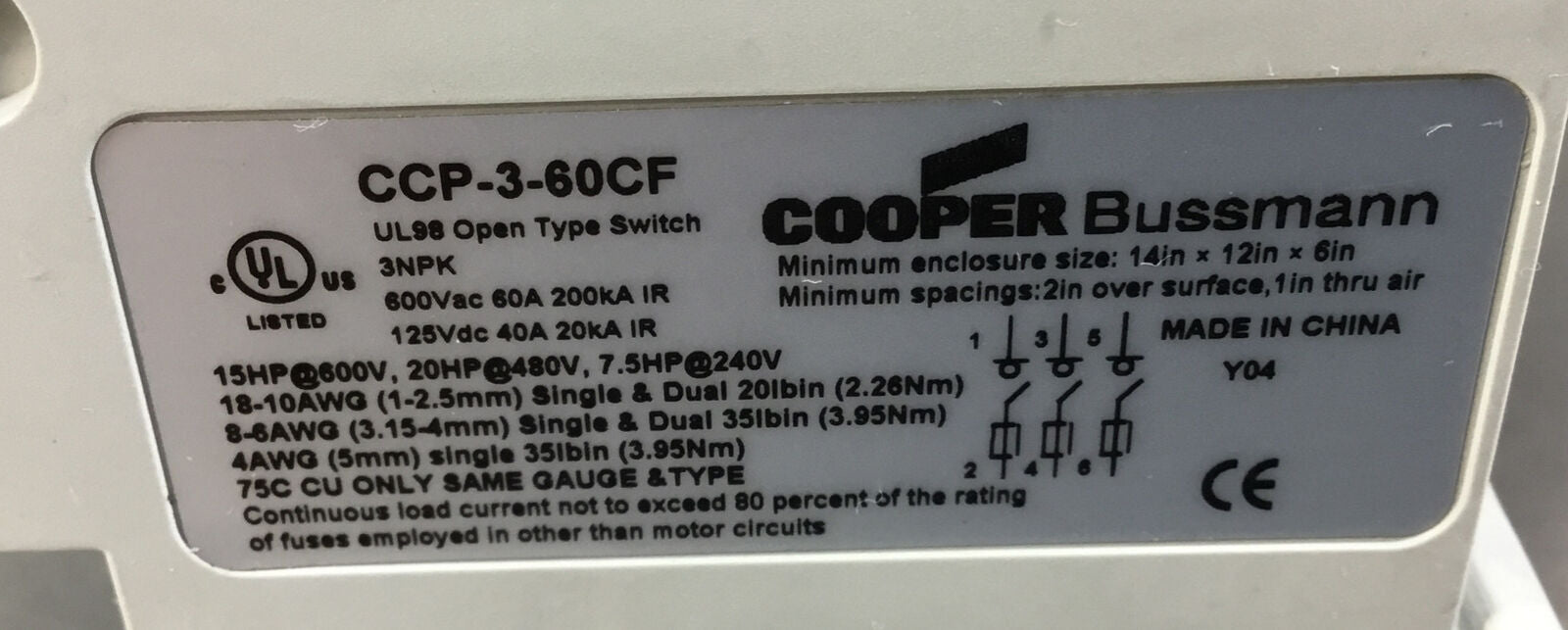 EATON CORPORATION CCP-3-60CF Switch 60A 600VAC 3 Pole Loc.4A
