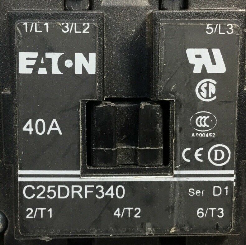 EATON/CUTLER HAMMER C25DRF340A /D1 CONTACTOR 3Pole 40A Coil Voltage 208-240V 4D