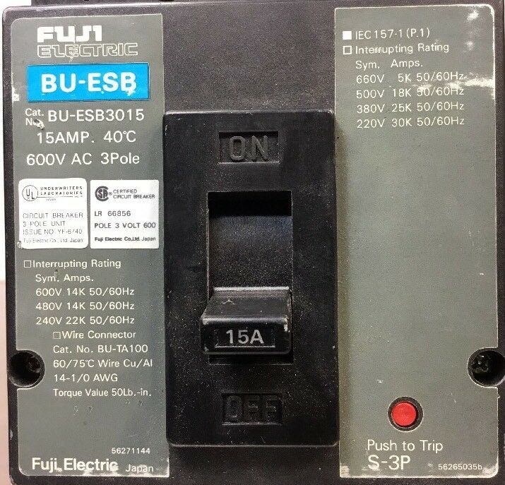Fuji 15 Amp Electric Circuit Breaker, BU-ESB3015, 15 Amp, 3 Pole, 600V 4E