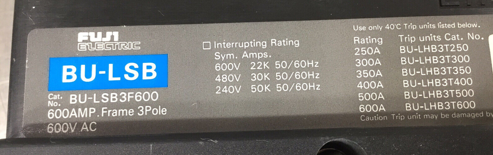 FUJI BU-LSB3F600 CIRCUIT BREAKER 600A 600V 3 Pole 4F
