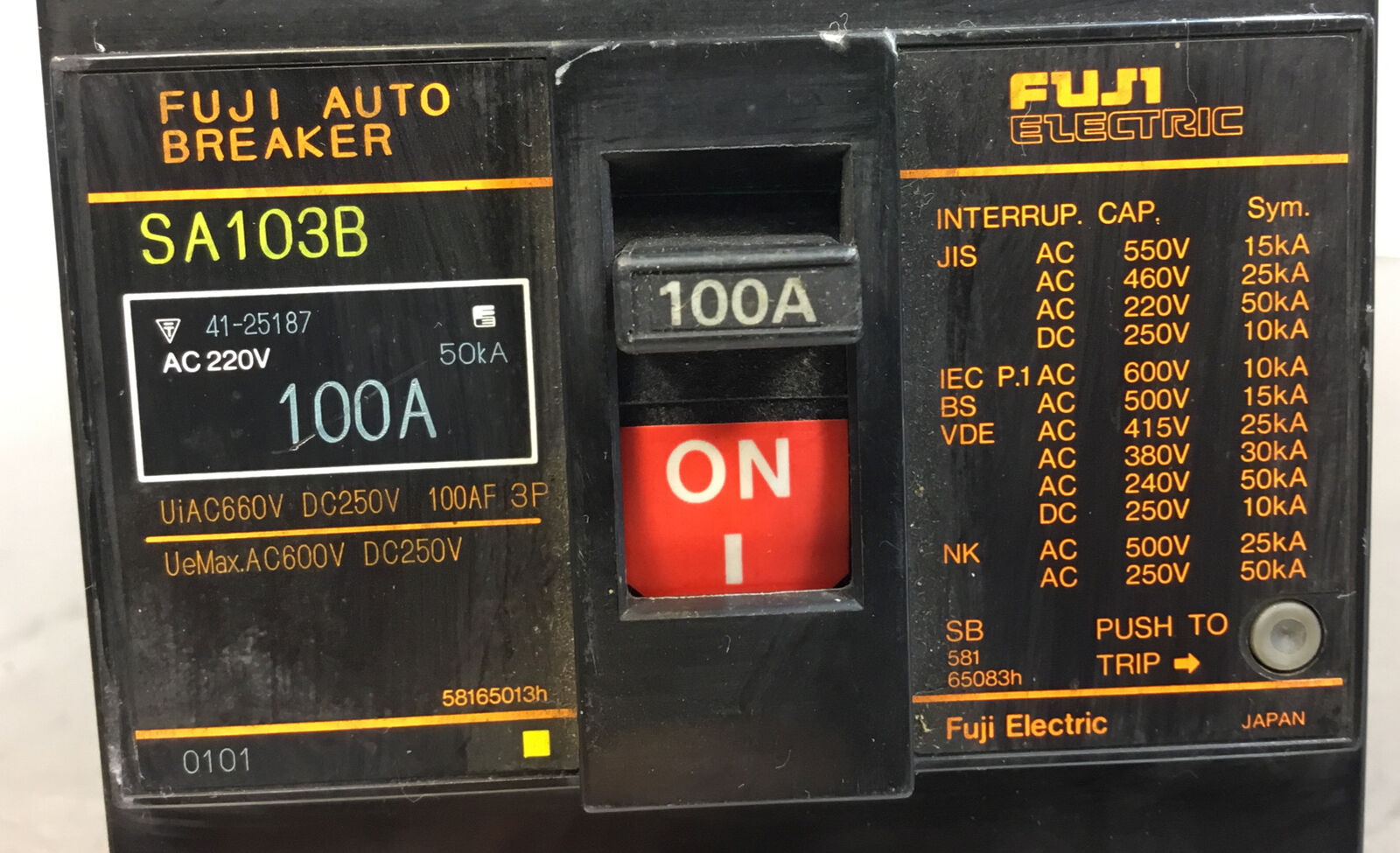 FUJI ELECTRIC SA103B 100A Auto Breaker 3 Pole 4F