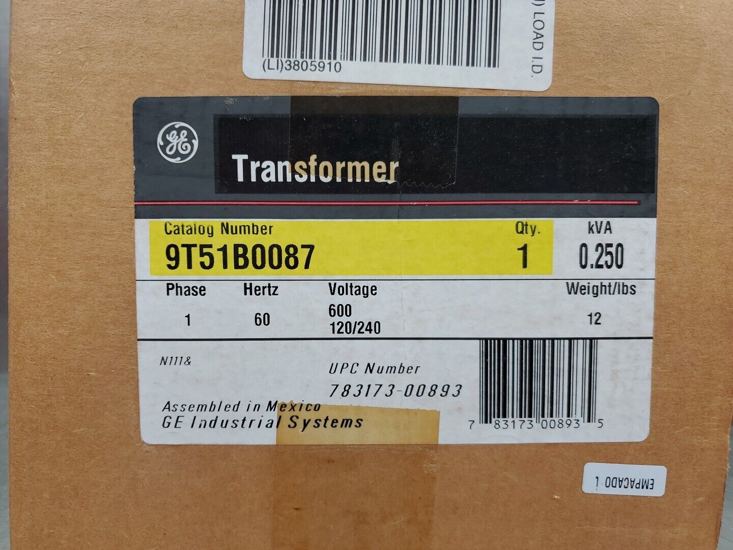 GE 9T51B0087 TRANSFORMER, 1 PHASE, 60 Hz, 600/120x240V, 0.250kVA. 4E-32