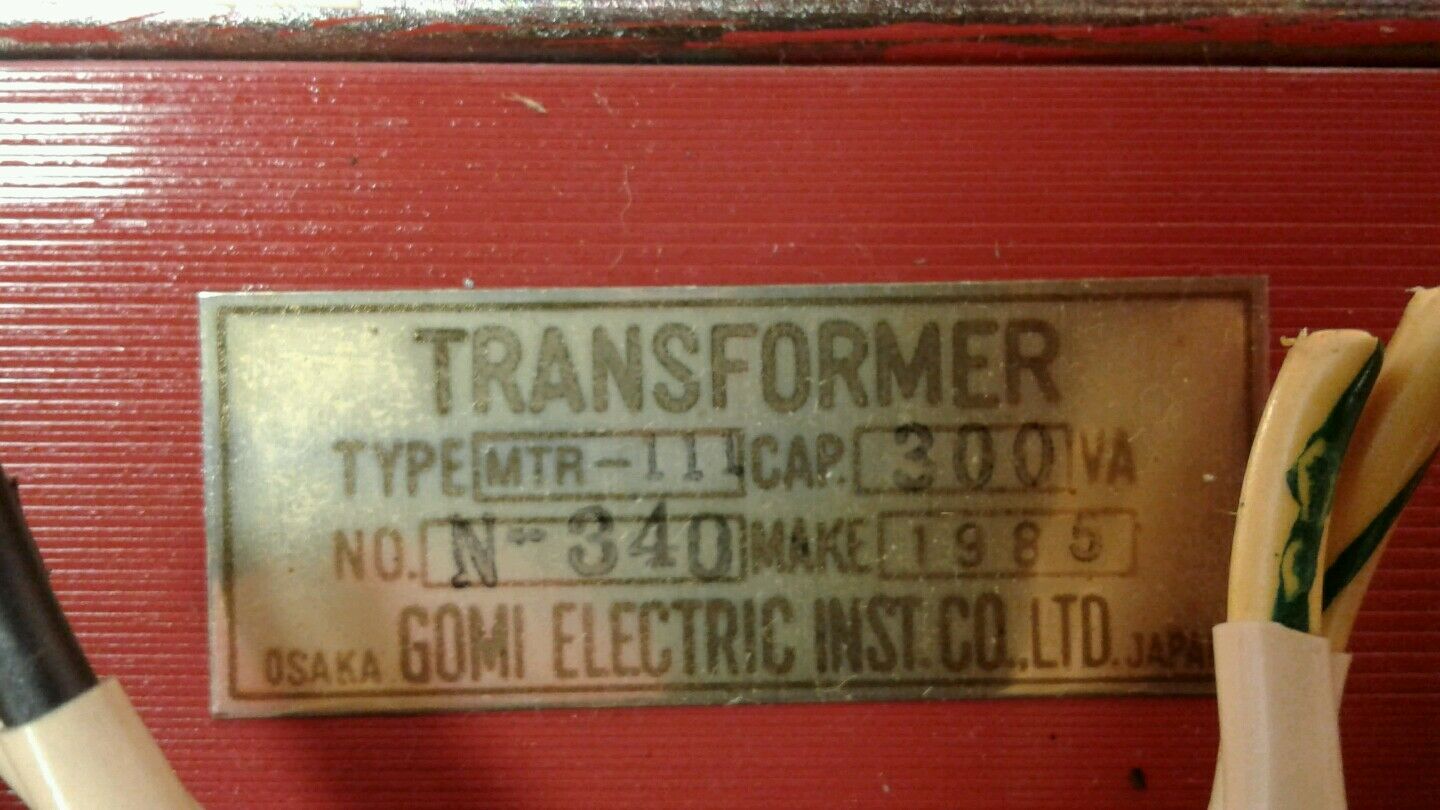 GOMI ELECTRIC MTR-111 TRANSFORMER 300 VA 240/220/200 VAC PRIMARY (N-340) 4E-3