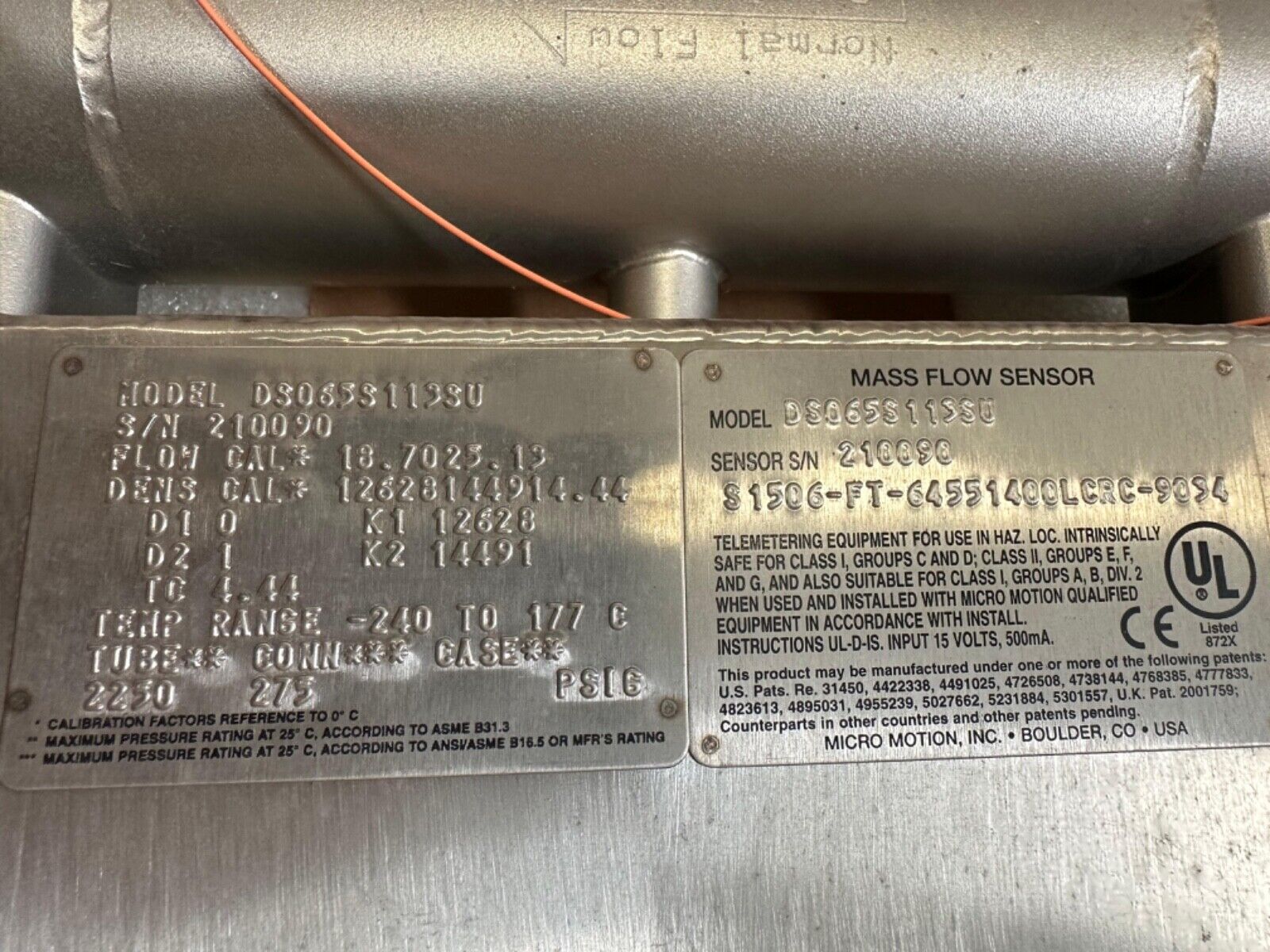 Micro Motion DS065S113SU Mass Flow Sensor (1D-37)