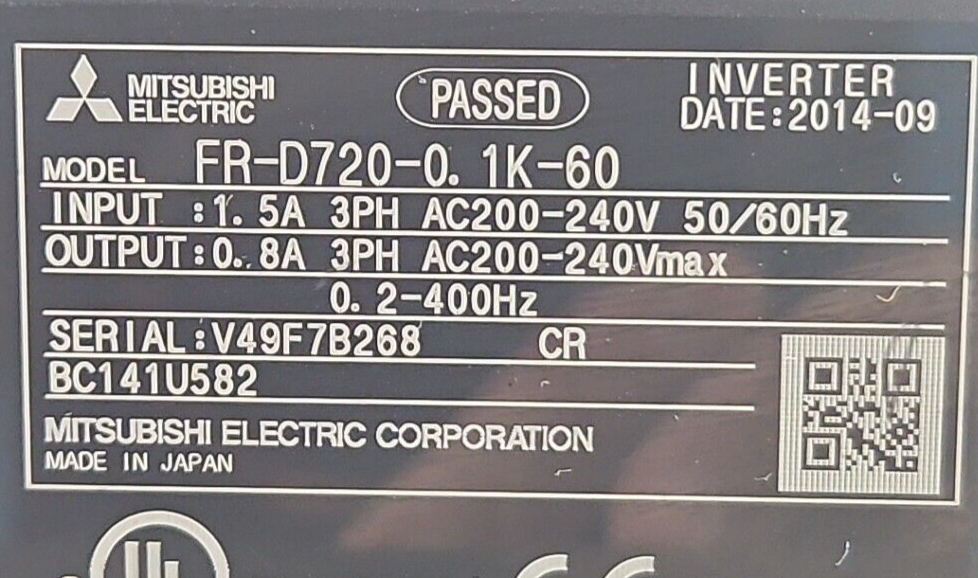 Mitsubishi FR-D720-0.1K-60 Inverter drive D700 200V (BIN4.4.4)
