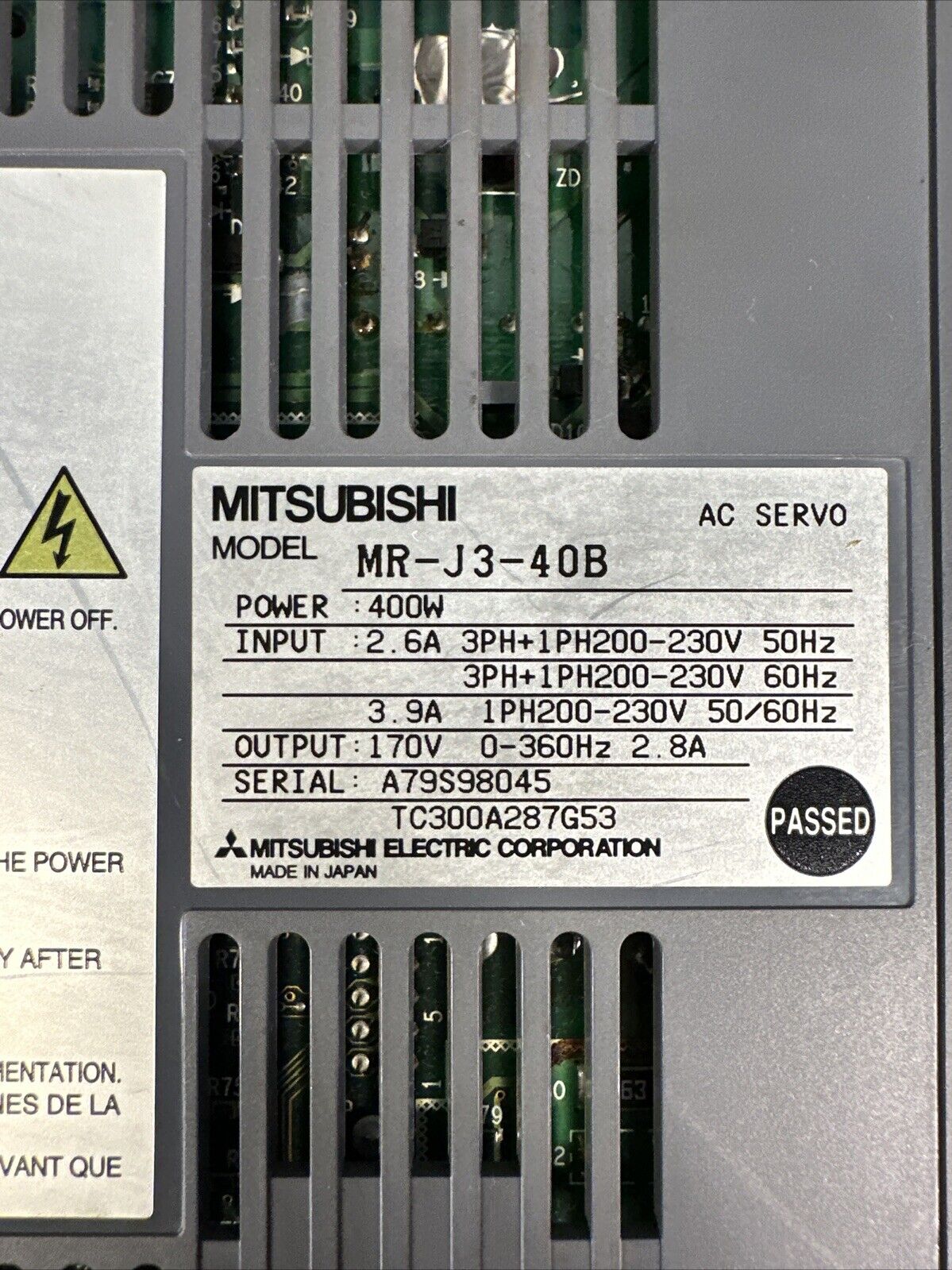 Mitsubishi MR-J3-40B AC Servo Drive 400W Out 170V 2.6A In 200-230V.