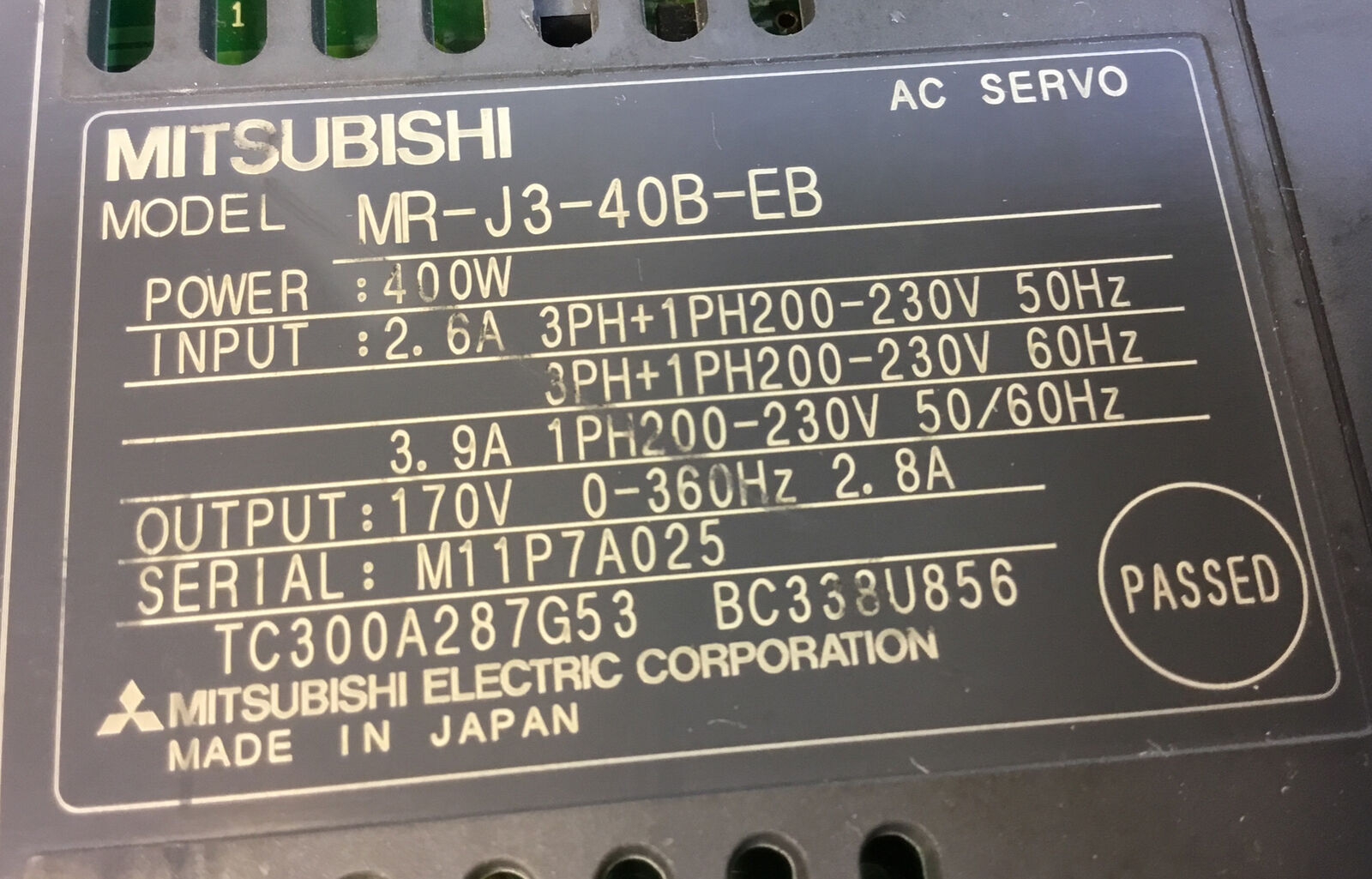 Mitsubishi MR-J3-40B-EB AC Servo Drive 400W Out 170V 2.8A In 200-230V. 1D