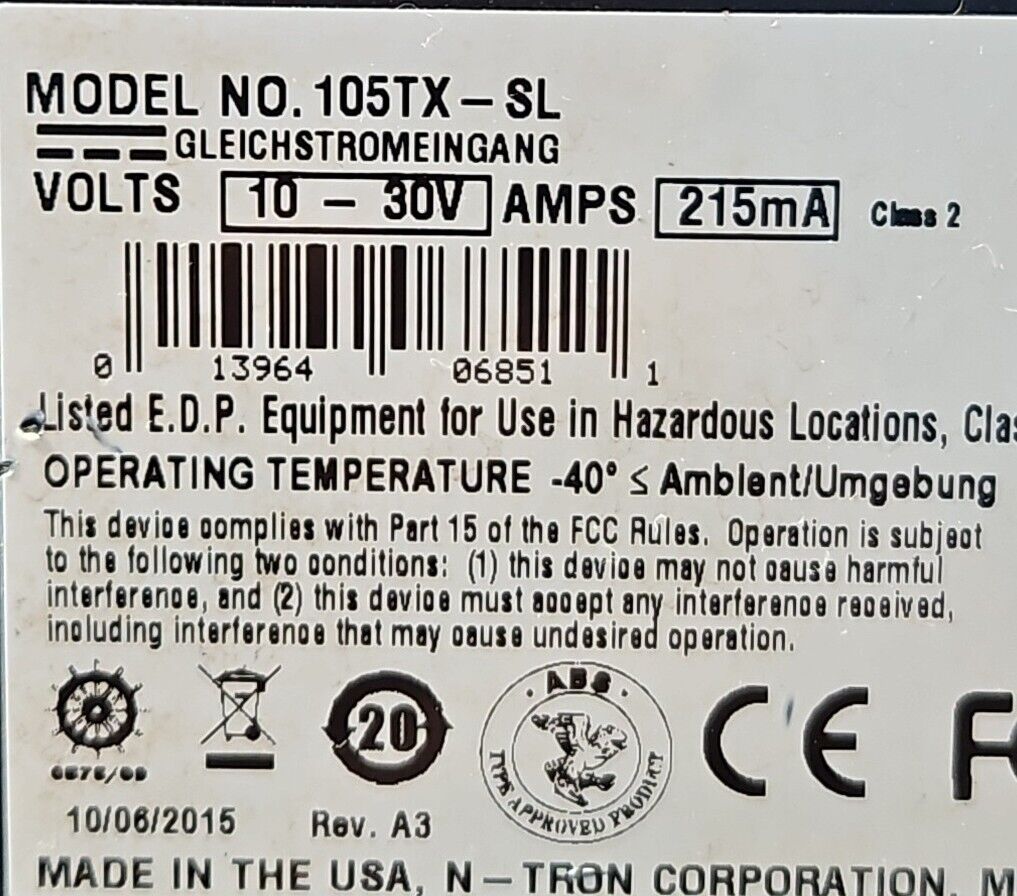 N-Tron 105TX-SL 5-Port Ethernet Switch 10-30V 215mA. Loc3C-22