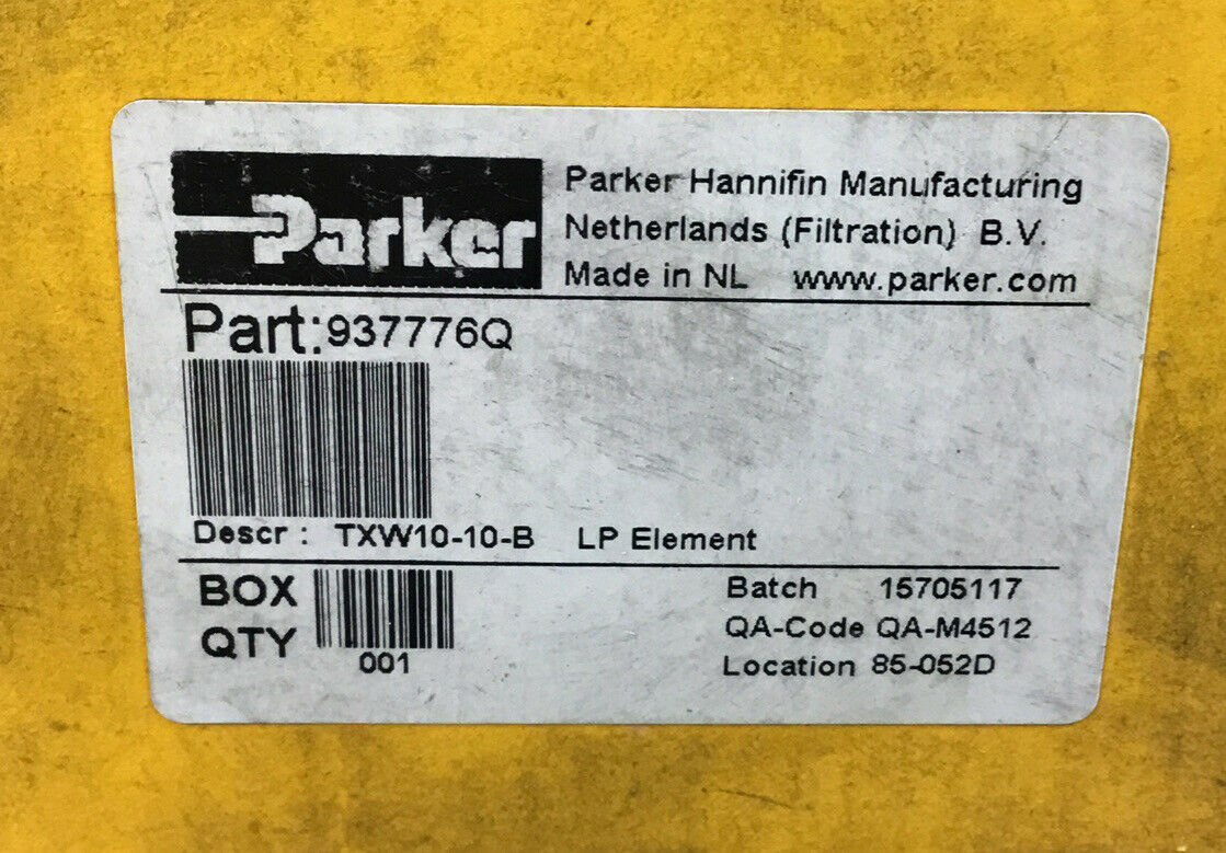 PARKER 937776Q / TXW10-10-B 10 MICRON ABSOLUTE HYDRAULIC FILTER ELEMENT. 3A-1