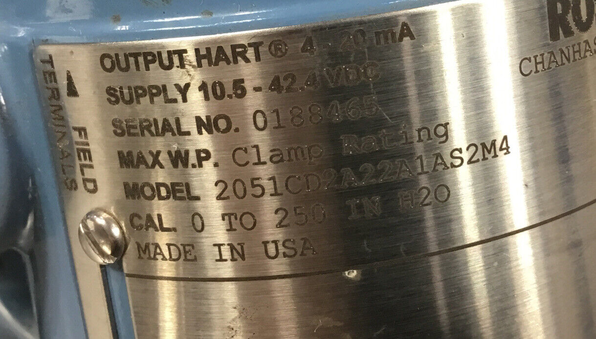 ROSEMOUNT PRESSURE TRANSMITTER 2051CD2A22A1AS2M4 w/ SCT60-B12B00-0000.