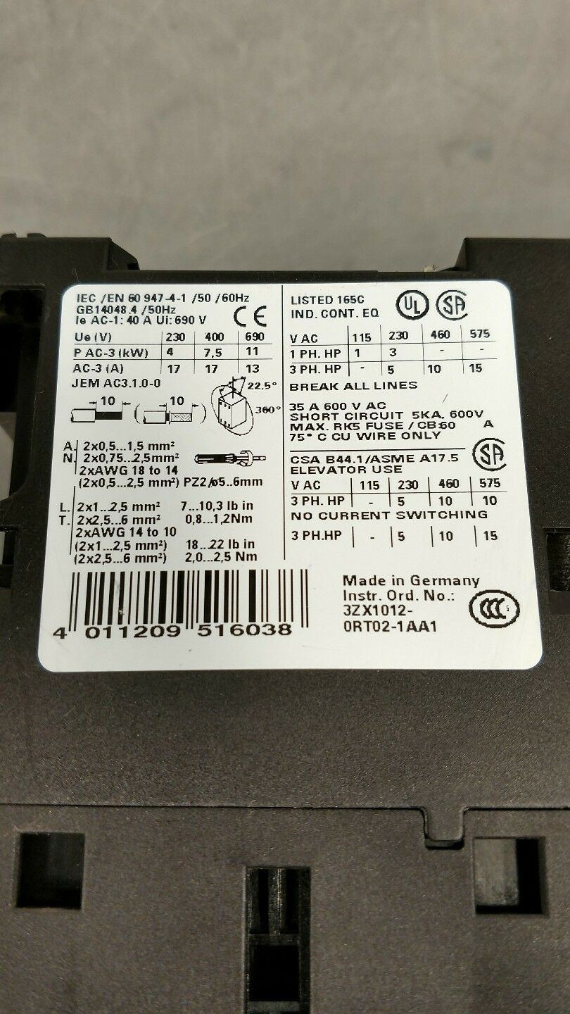 SIEMENS 3ZX1012-0RT02-1AA1 w/ 3RH1921-1HA22-3AA1 CONTACTOR 4E-13