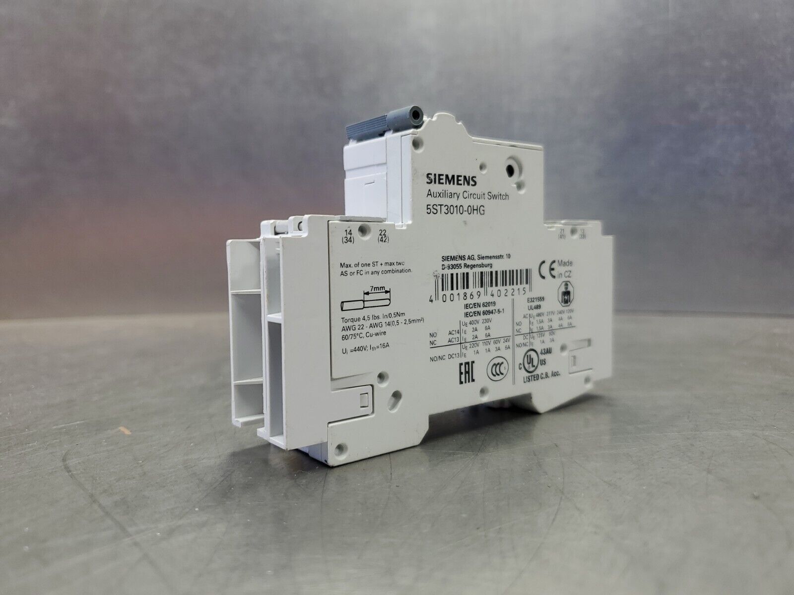 SIEMENS 5SJ4104-7HG41 4A CIRCUIT BREAKER w/5ST3010-0HG AUXILIARY SWITCH. 4E-17