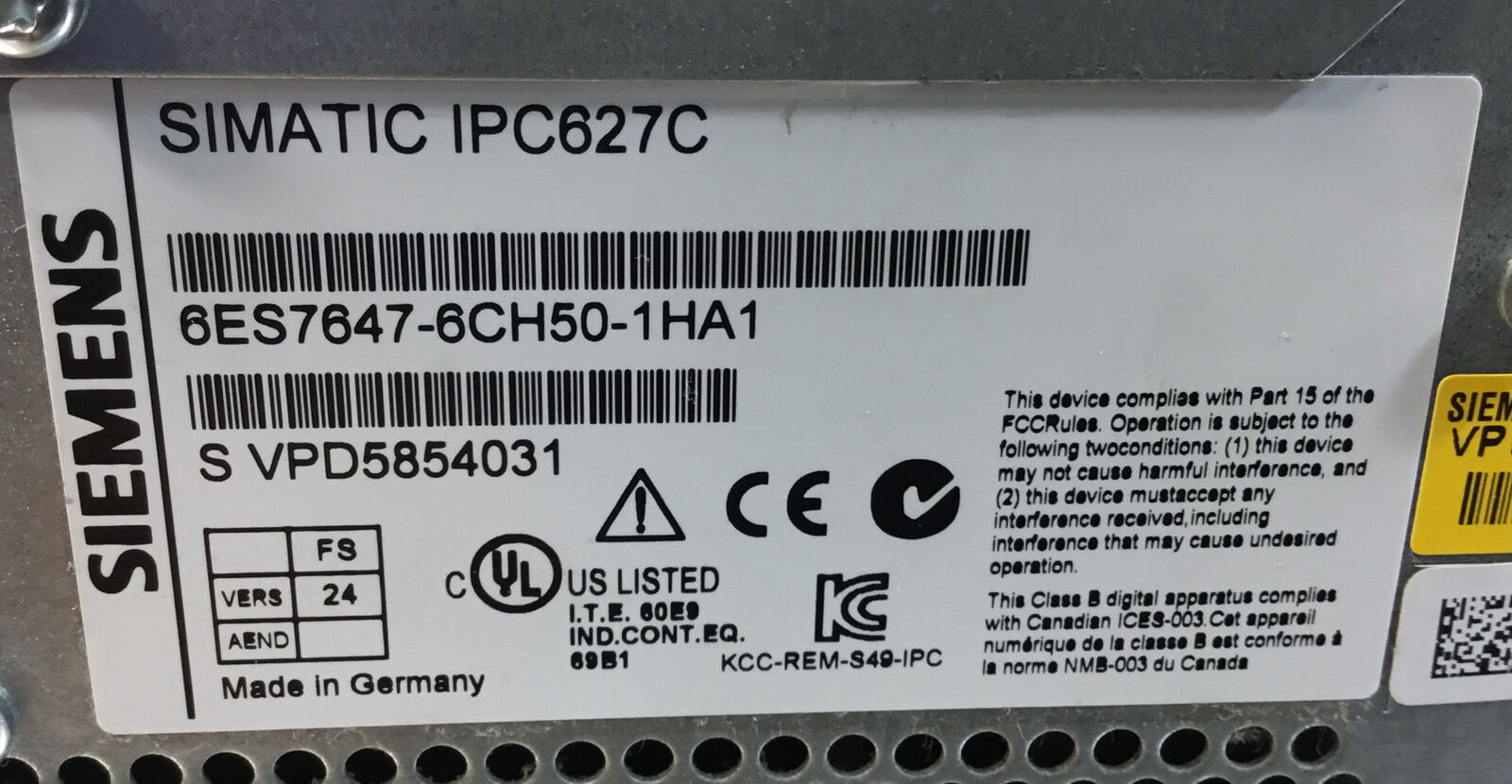 Siemens Simatic Box PC IPC627C 6ES7647-6CH50-1HA1 3B