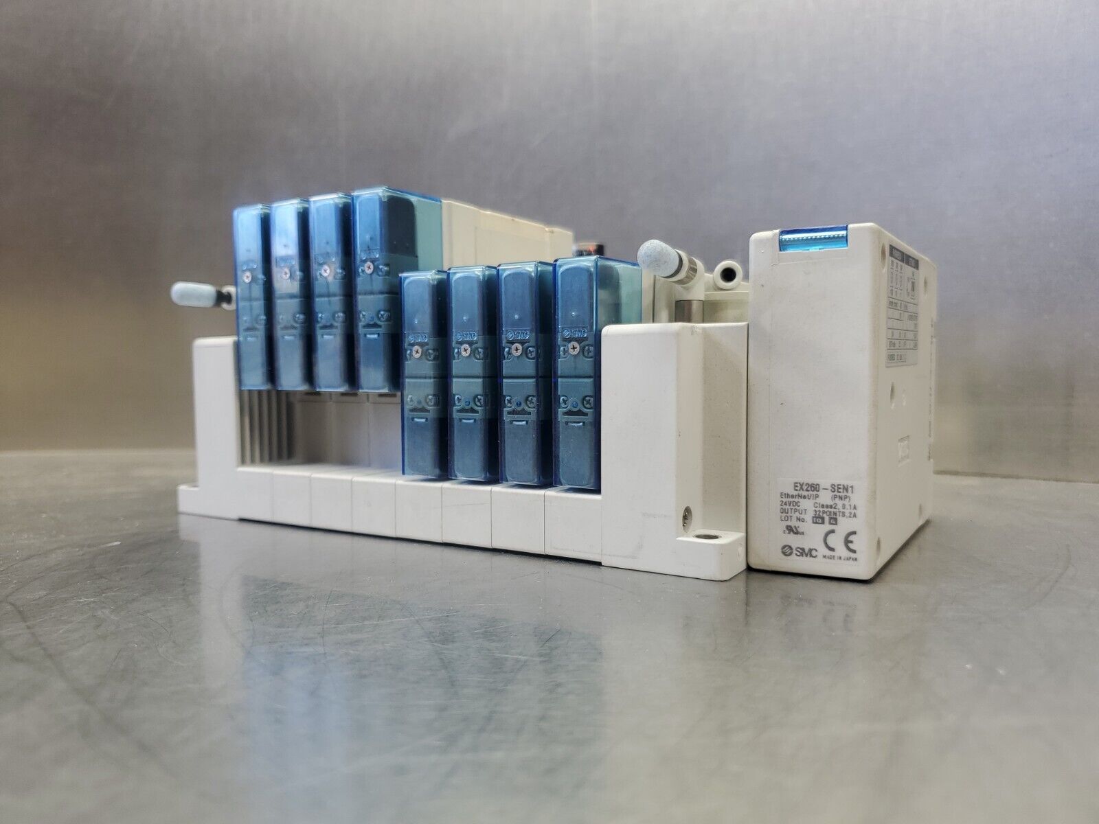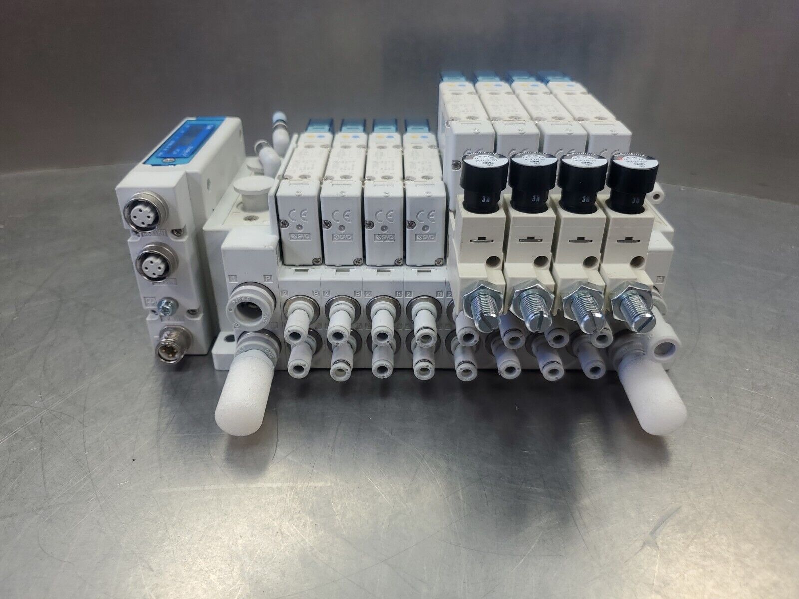 SMC Manifold w/EX260-SEN1 & (8) SY5200R-5U1 & (4) x10PSI Modules. 6D-19