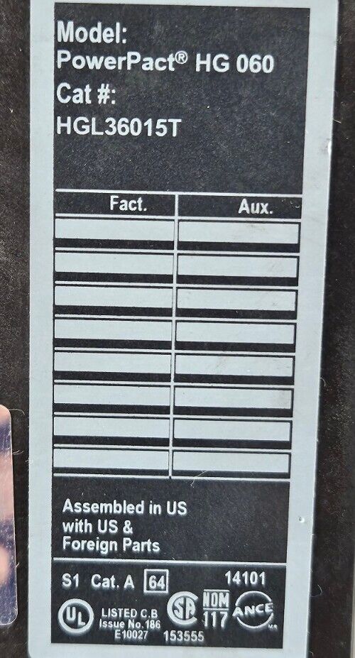 Square D HGL36015T Power Pact 3-Pole Thermal Magnetic Circuit Breaker. Loc4B-26
